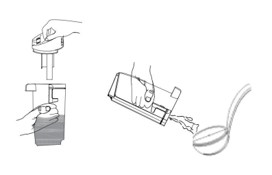 Press the sewage tank release button and remove it from the device as shown.