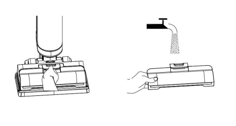 Press the button and pull up to remove the brush roller cover. Rinse with clean water.