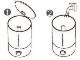 - When filling the water tank, you need to remove the decorative cover of the water tank and use a water container to add water (do not add water to the mist outlet; do not lift the water tank when the machine is working). The water must not exceed the maximum water level.