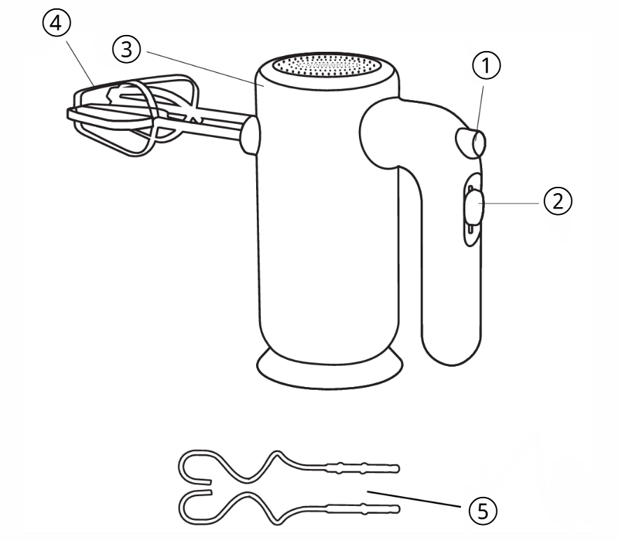 Untuk mengocok telur, krim kue, krim, menumbuk kentang, dsb. |