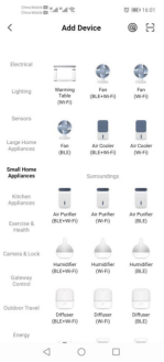 1. หากไม่พบอุปกรณ์โดยอัตโนมัติให้เลือกเมนู“Manual Addition” → เลือกหมวด “Small Home Appliances” (เครื่องใช้ไฟฟ้าขนาดเล็ก) จากนั้นค้นหาและเลือกอุปกรณ์ของคุณ