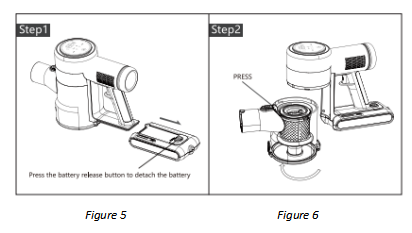 - Press the dust cup release button to remove the dust cup and take out the filter (Figure 6).