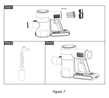 - With the vacuum cleaner turned off, rotate the cover on the handle to remove the sponge filter (Figure 7).