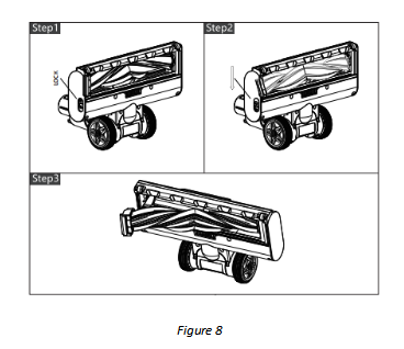 - Slide the button on the side of the floor brush to remove the roller brush (Figure 8).